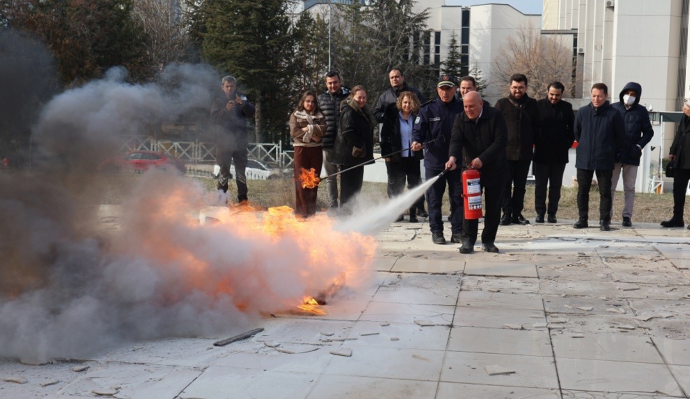 Bakanlığımız Merkez Yerleşkesinde Ankara İtfaiyesinden uzman görevlillerin katılımı ile yangın anında yapılması gereken süreçler ile ilgili konferans salonunda eğitim ve akabinde açık havada yangın tatbikatı icra edildi.